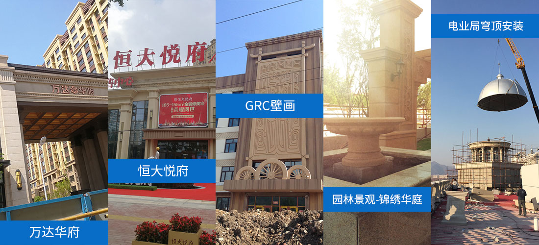 本企業(yè)的產(chǎn)品被廣泛應(yīng)用于建筑室內(nèi)及外墻的裝飾、裝修工程和市政、園林景觀的造景等。主要產(chǎn)品有檐線、門窗裝飾線、穹頂、扶手墩、山花、浮雕裝飾板、中式西式的傳統(tǒng)裝飾、歐式羅馬裝飾柱、仿蘑菇石、仿剁斧石、仿干粘石、假山、噴泉、圓雕、藝術(shù)壁畫、外墻掛板、室內(nèi)石膏線、燈盤、浮雕、羅馬柱等。均可根據(jù)客戶要求設(shè)計(jì)、訂做、施工。